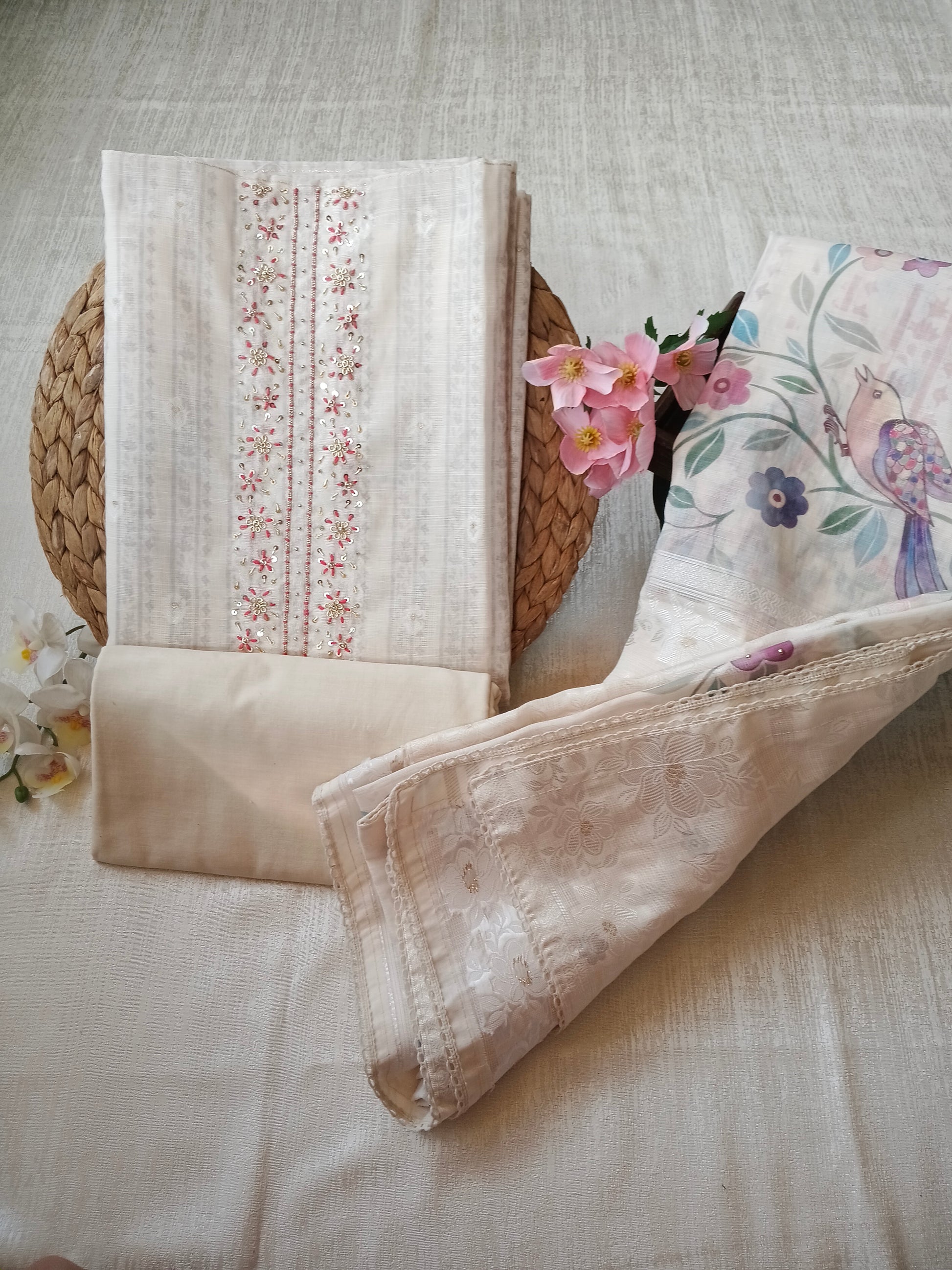 - Dupatta: Linen 2.5 meters